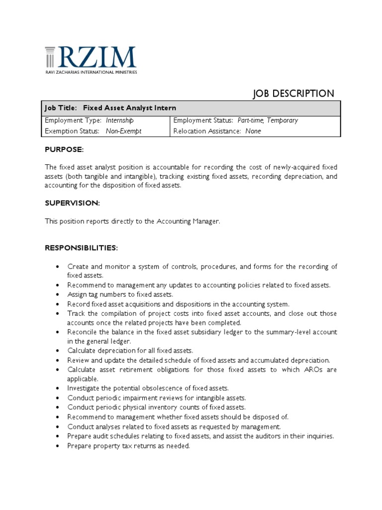 They do this through accounts payable transactions reviews and vendor files. Because these assets are necessary for business operations but are. Accounting manager job description template to hire quality candidates for your accounting department. Fixed asset responsibilities are moderately complex in nature and require a professional accountant to effectively conduct these accounting functions and assignments. A blog on human resources management, job descriptions, interview & resume.